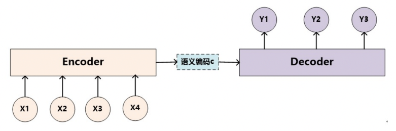- seq2seq模型架构包括三部分,分别是encoder(编码器)、decoder(解码器)、中间语义张量c。