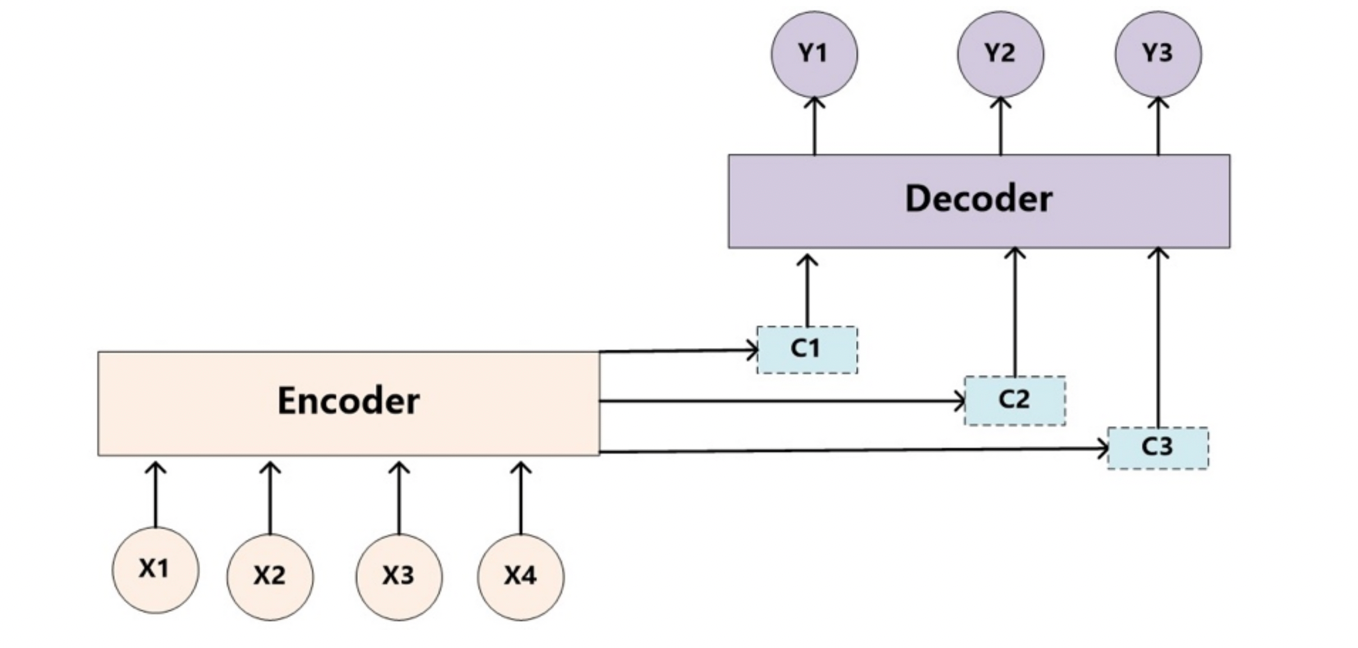 - 即生成目标句子单词的过程成了下面的形式: $$ y_1 = f1(C_1) \\ y_2 = f1(C_2, y_1) \\ y_3 = f1(C_3, y_1, y_2) $$
