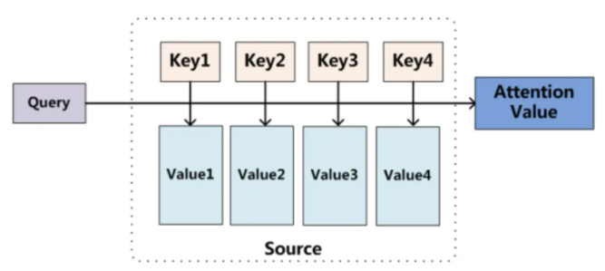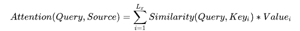 数据对,给定Target中的某个元素Query,通过计算Query和各个Key的相似性或者相关性,即权重系数;然后对Value进行加权求和,并得到最终的Attention数值。将本质思想表示成公式如下: